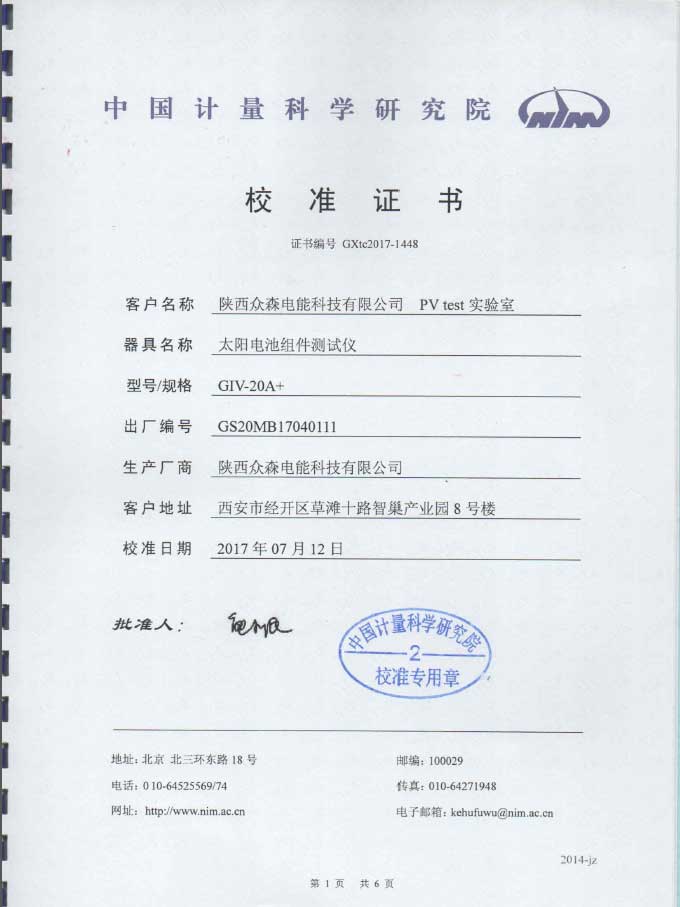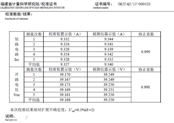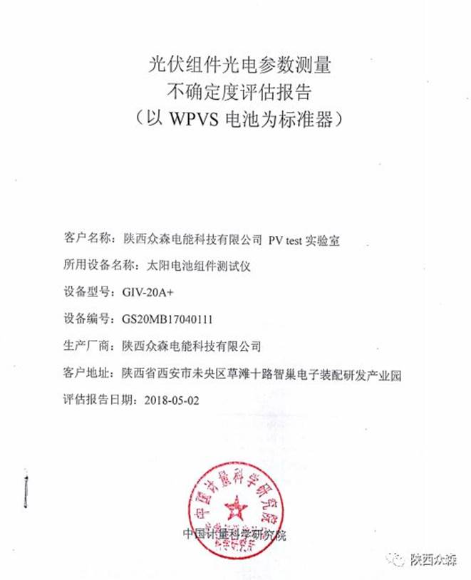 目前,在太陽電池組件測(cè)試領(lǐng)域,眾森PV test 實(shí)驗(yàn)室的1.7%測(cè)量不確定度處于國(guó)內(nèi)領(lǐng)先水平,已獲得中國(guó)計(jì)量科學(xué)研究院認(rèn)證。