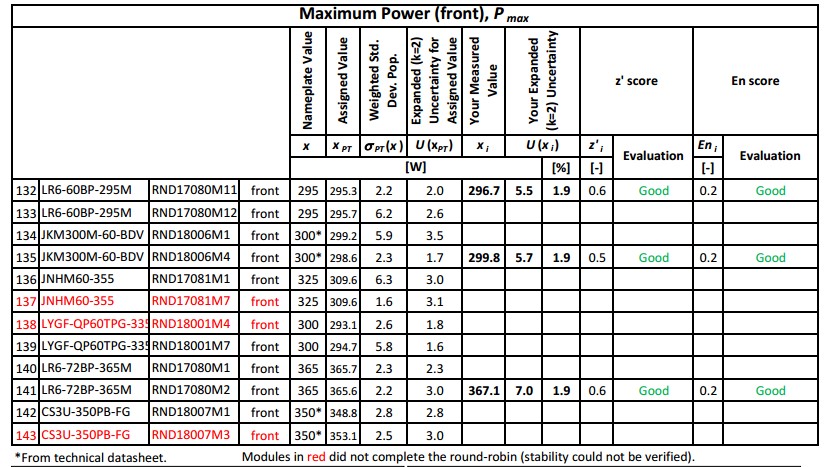 針對(duì)本次國(guó)際比對(duì),陜西眾森高度重視。比對(duì)伊始就與中國(guó)計(jì)量科學(xué)研究院緊密合作,在比對(duì)過程中多次進(jìn)行技術(shù)討論,并嚴(yán)格按照不確定分析要素進(jìn)行了分析。同時(shí),購置了兩種高準(zhǔn)確度標(biāo)準(zhǔn)太陽電池,并對(duì)光譜失配進(jìn)行修正。在本次比對(duì)結(jié)果中,所有樣品(2塊單面組件和3塊雙面組件)功率測(cè)試都獲得Good的結(jié)果?!瓣兾鞅娚恢币詠矶挤浅V匾暜a(chǎn)品品質(zhì),歷年來針對(duì)每款新產(chǎn)品都進(jìn)行三方校準(zhǔn),力求每款設(shè)備穩(wěn)定、準(zhǔn)確。這也為本次國(guó)際比對(duì)獲得好結(jié)果打下了良好基礎(chǔ)”,中國(guó)計(jì)量科學(xué)研究院研究員熊利民如是說。